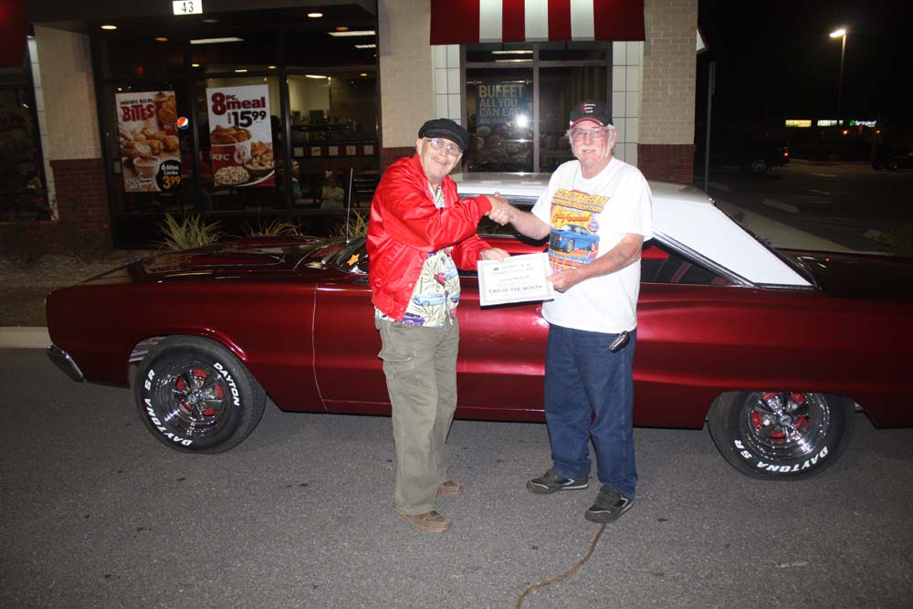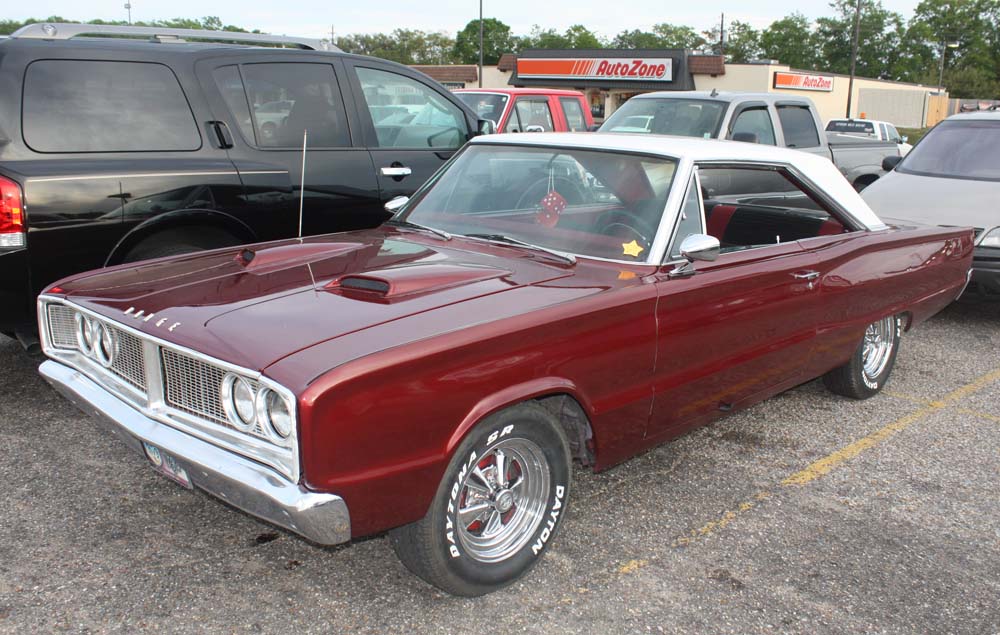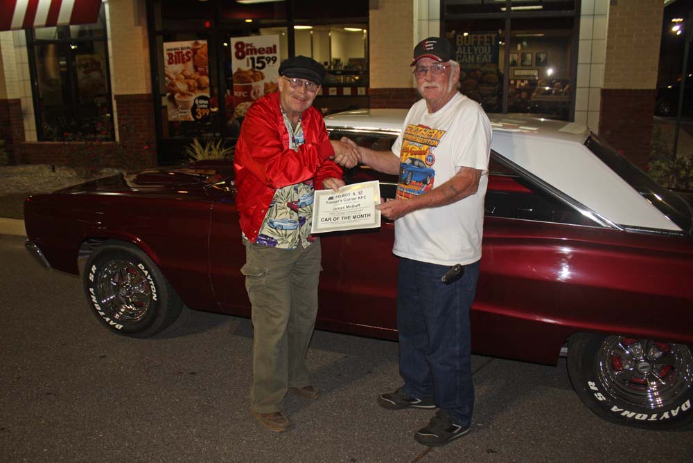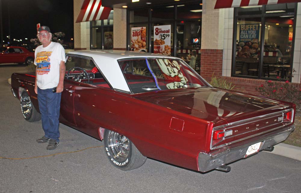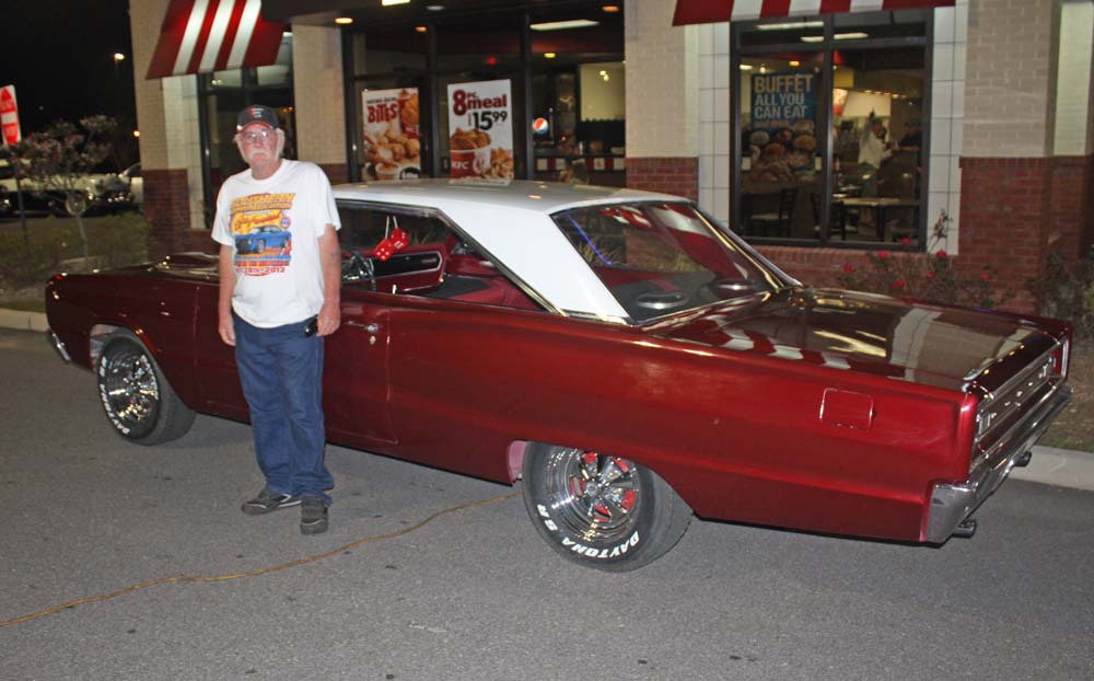 Po-Boy's Cruise-In @ Tillman's Corner KFC To see the pictures of our May 4th Cruise in with the Azalea Trail Maids you will have to check back in a few days after we have had time to process the pictures and create the WebPages. It will be worth the wait so check back often! To see a list of all of the Cruise-In photo galleries CLICK HERE (Tillman's Corner, AL, Kentucky Fried Chicken) Mobile's Showcase for Antique, Classic and Custom Cars Po-Boy's Cruise-In @ KFC events are for all of us who love Antique Cars, Classic Cars, Custom Cars, Hot Rods, Street Rods and Rat Rods. PO-BOY'S CAR OF THE MONTH WINNER FOR APRIL 2013 1966 Dodge Coronet Owner: James McGuff of Theodore, Alabama This great car Ruby red metallic with a white top. The "Before" pictures below show the car last year before it got this cool paint job. Now (April 6th, 2013)