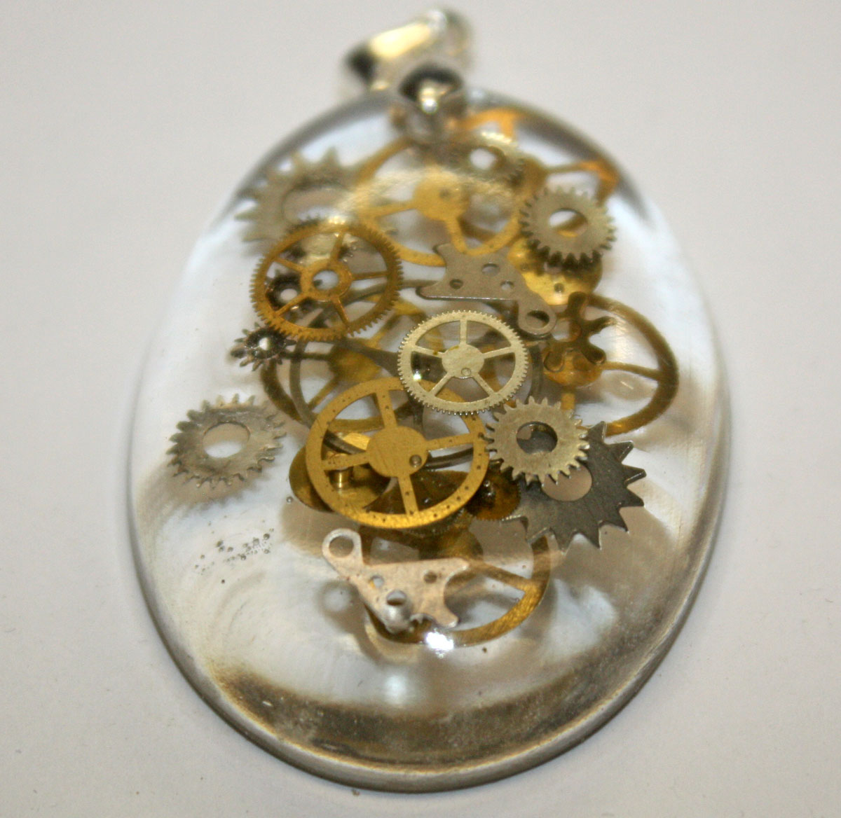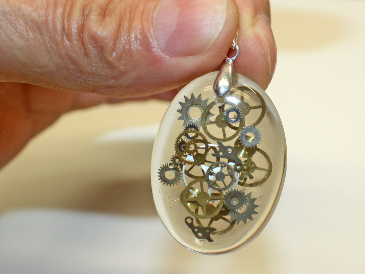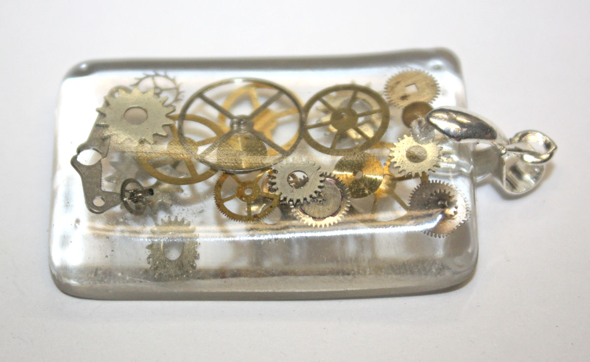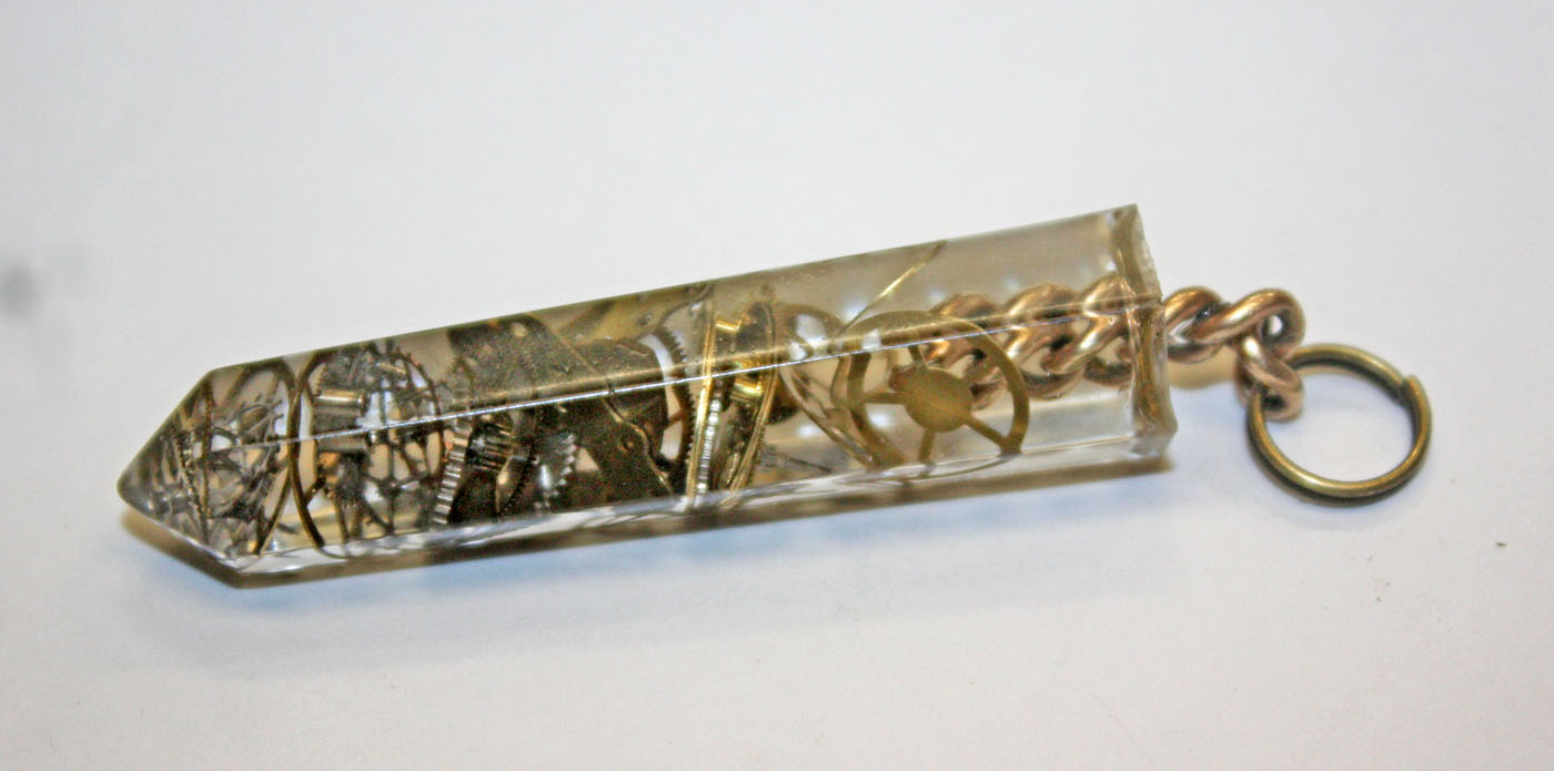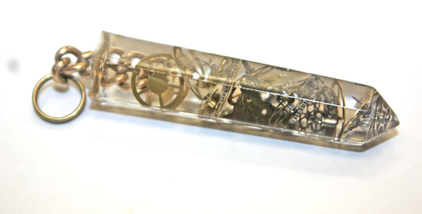 antique watch parts imbedded inside. The pieces are at different layers for