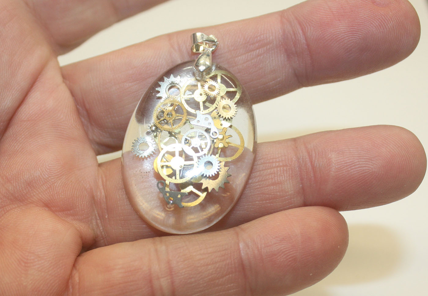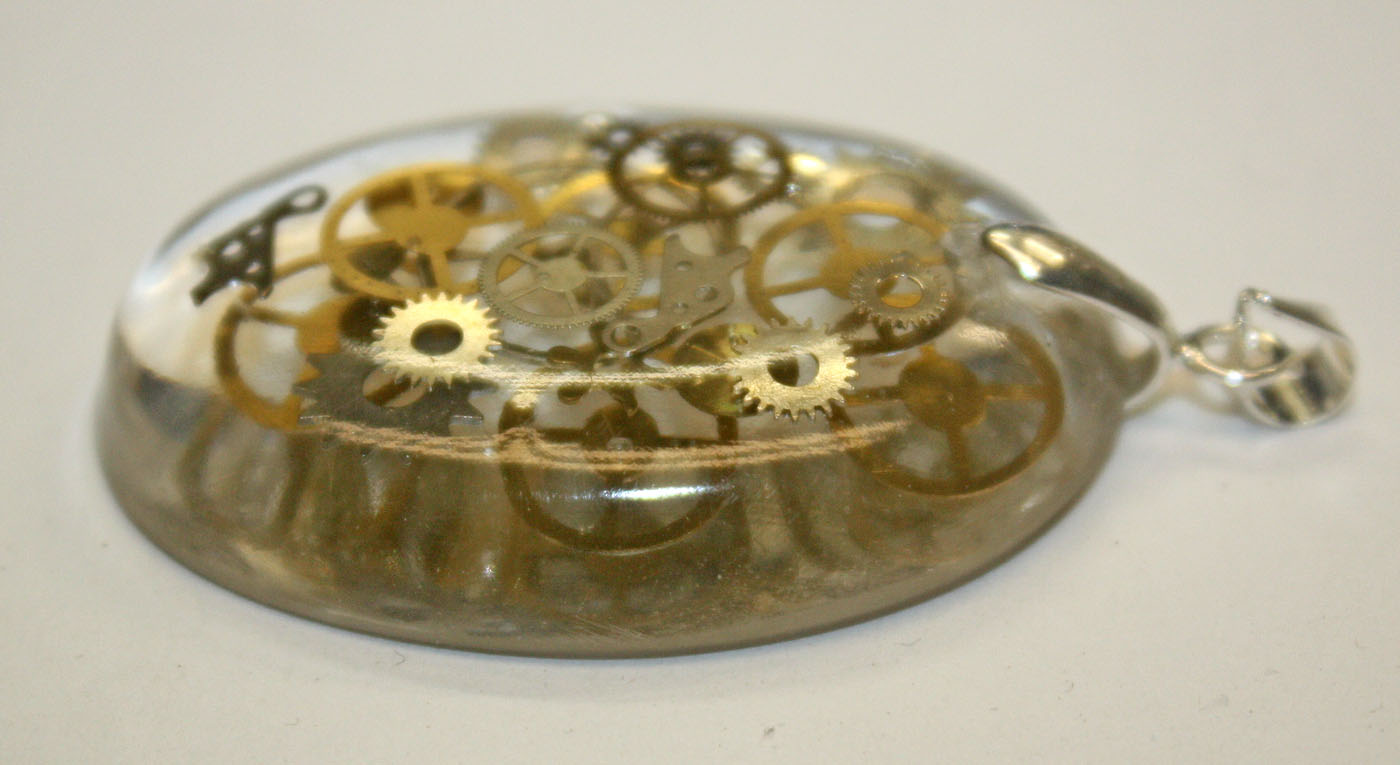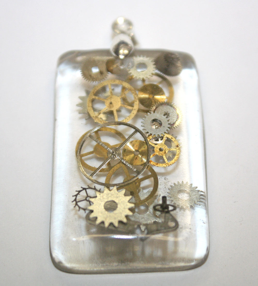 beautiful crystal clear handmade Steampunk 3D resin pendant with genuine
