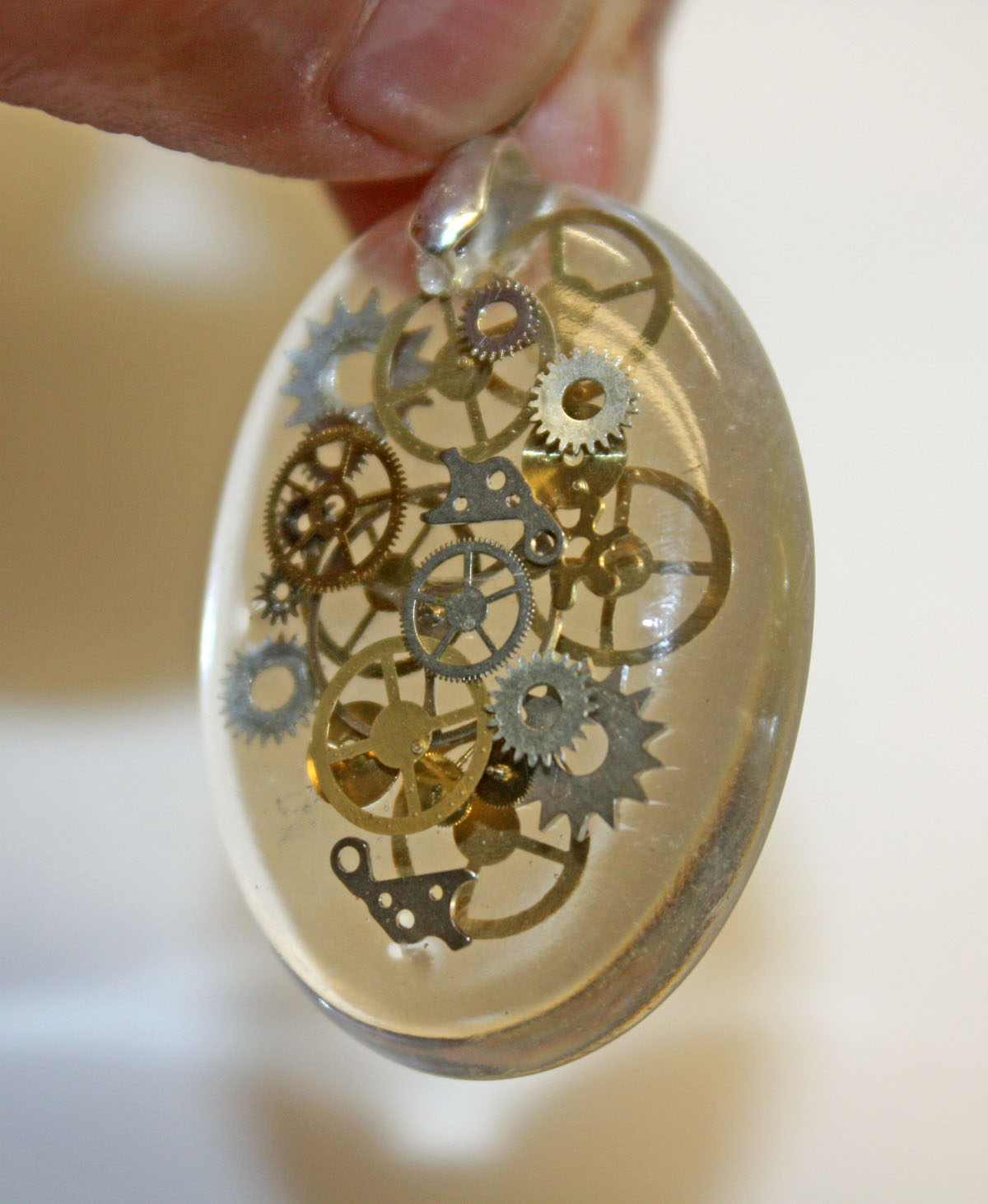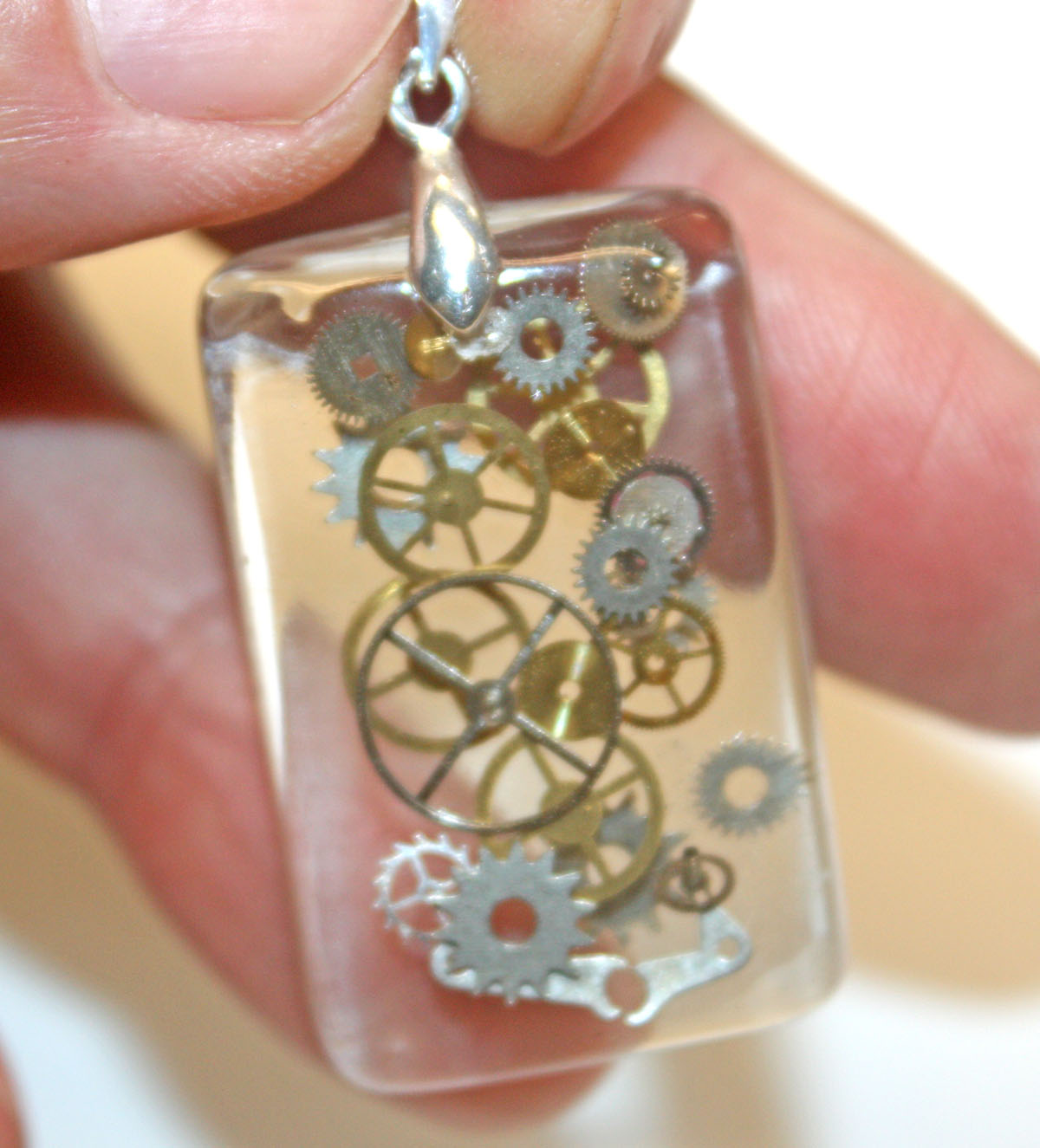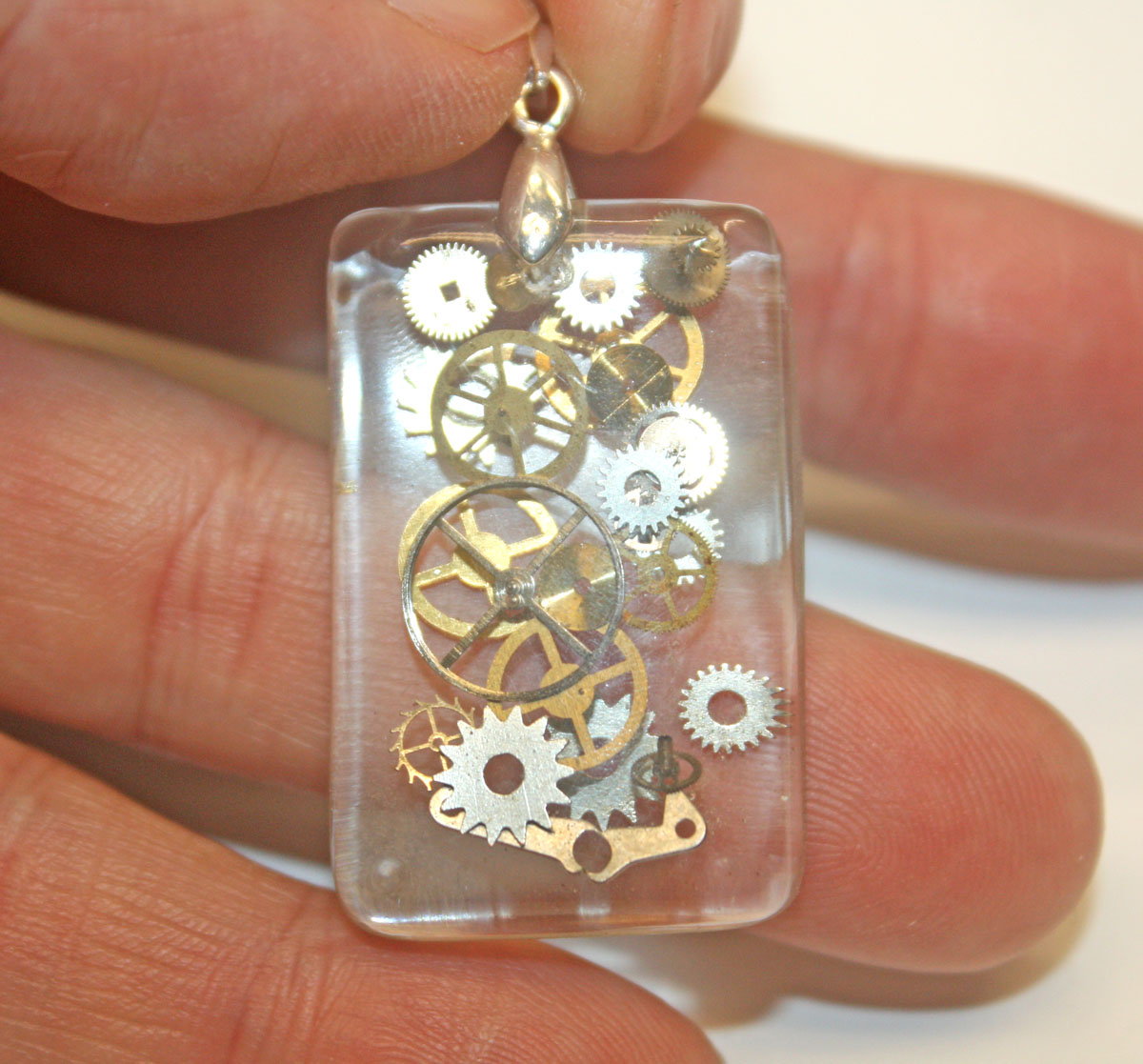 beautiful crystal clear handmade Steampunk 3D resin pendant with genuine