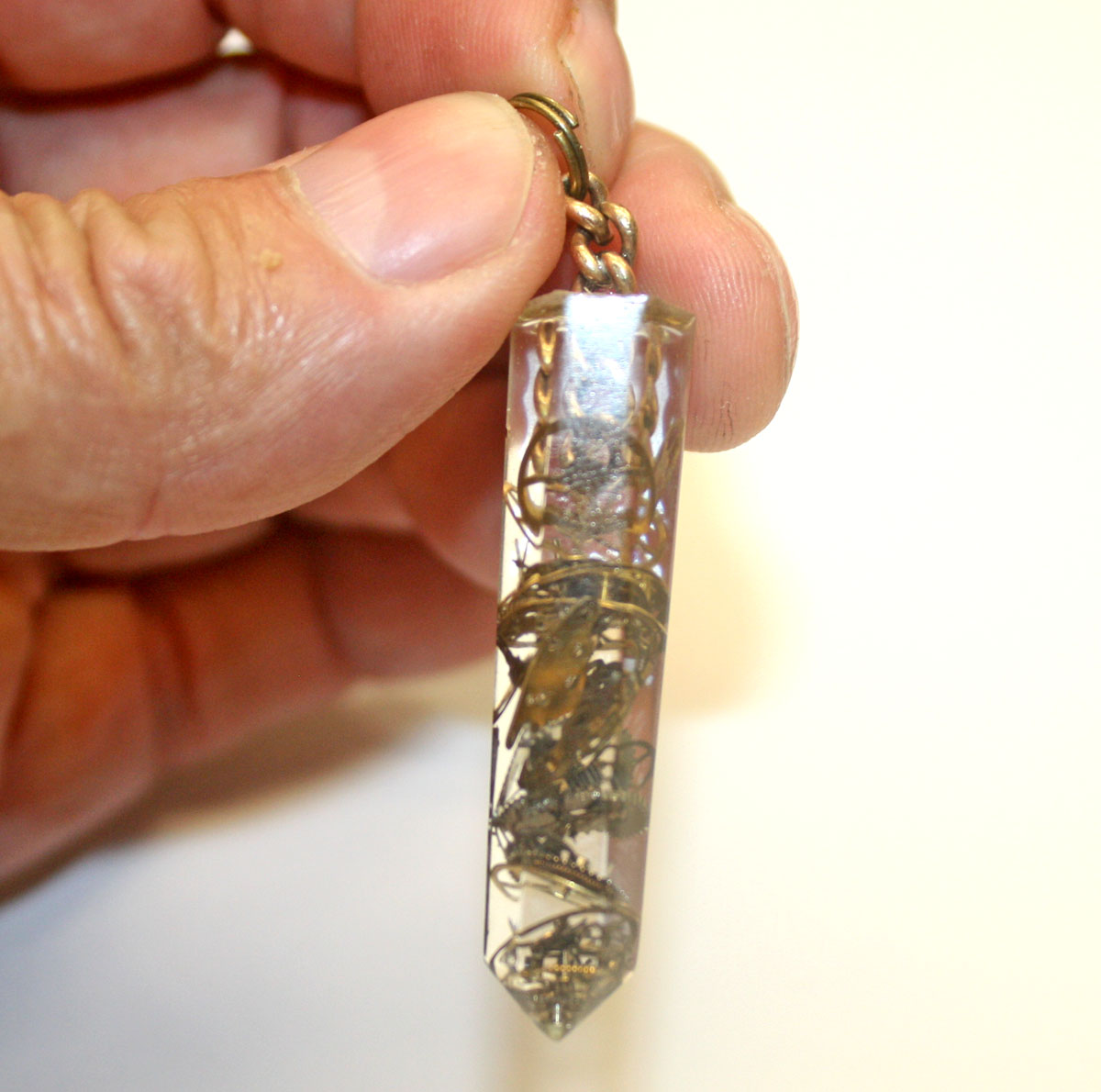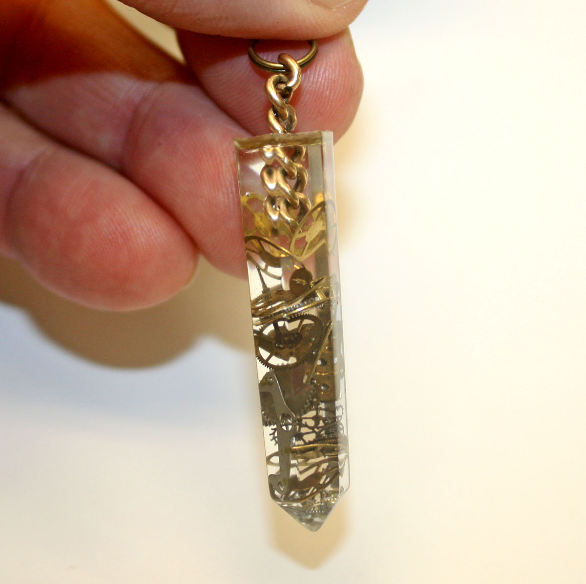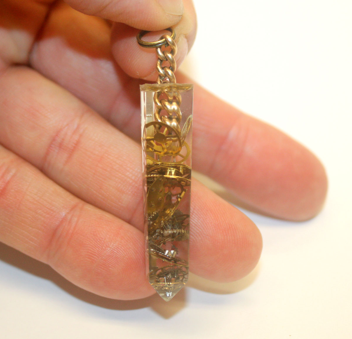 antique watch parts imbedded inside. The chain to hang it with is a section