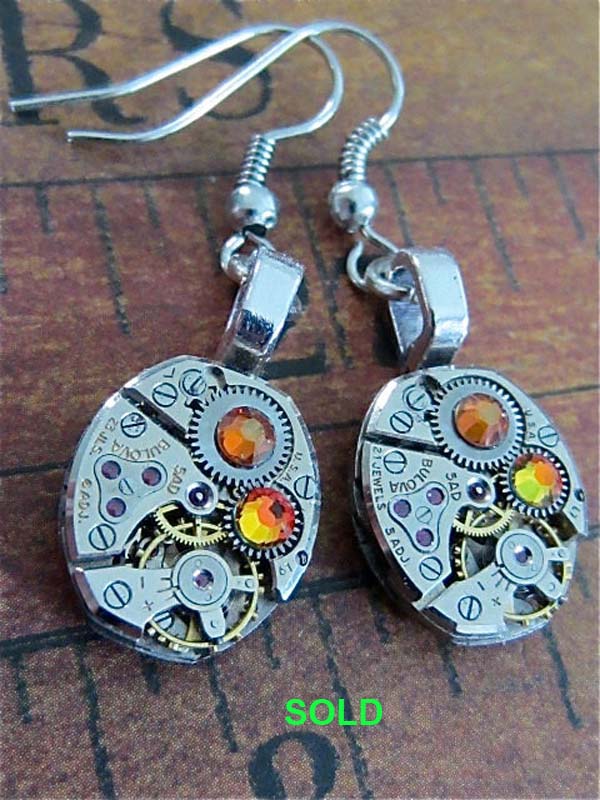 one of a kind 3D Steampunk ear rings (Made In Saraland, Alabama). Genuine antique watch