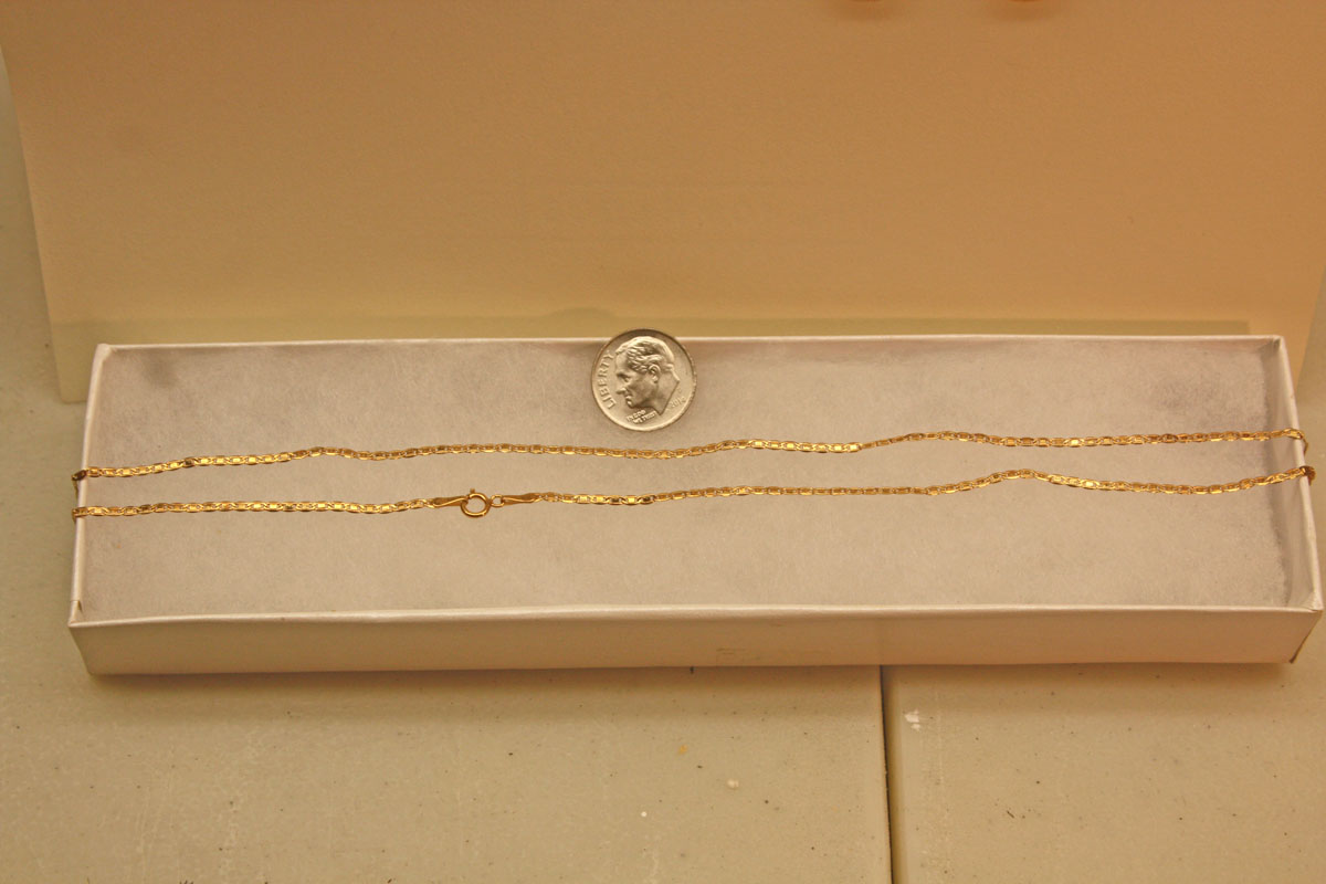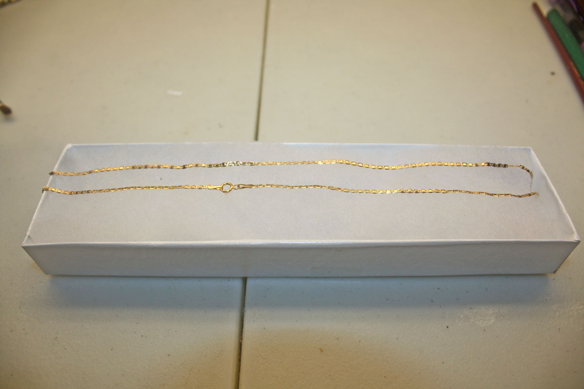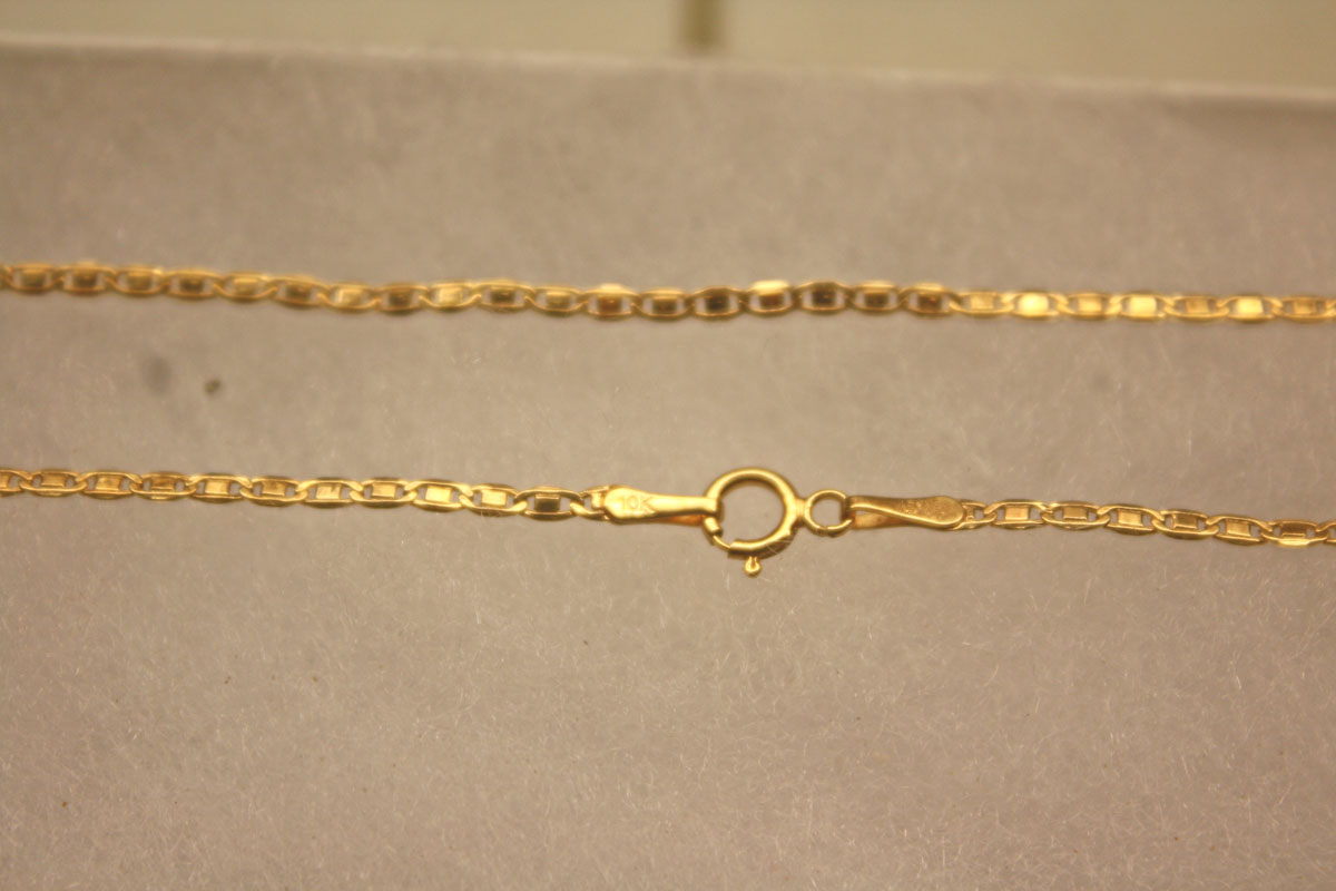 long 10 carat solid gold necklace. It has never been around anyone's neck. I'm feeling generous so